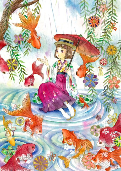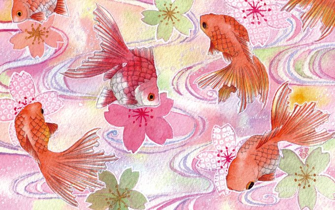 着物、金魚、四季などをよく描きます。