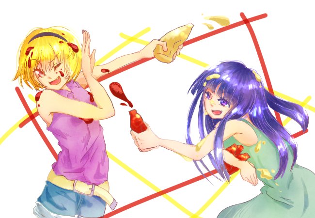 折角だからなにか絵を上げたいなと思っていたけどパーティー中に上げそびれたです…夏頃に描いたケチャップとマヨをかけあうりかさとちゃん