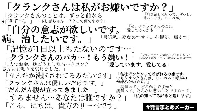 治療が困難とされる特殊な病を患った人間を拾って保護している、ラブ・クランクハイトという男に拾われた女の子の話。 クランクの病は不老不死 リーベの病は忘却症