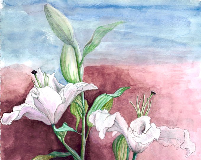 今日は絵の習い事の日でした。百合の続きを少し描き足しました。(2枚目はスキャン)