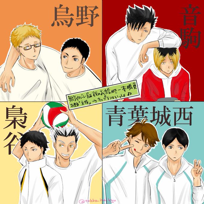 バカバカしいくらい遅刻なんですが、どうしてもこのお題で描きたかった…!お題【主将】もちろん各主将と一緒!ってことで。次からは気を付けます…こんな顔してますがみんな主将好きなはず。 #無気力バレー版夜のお絵描き一本勝負