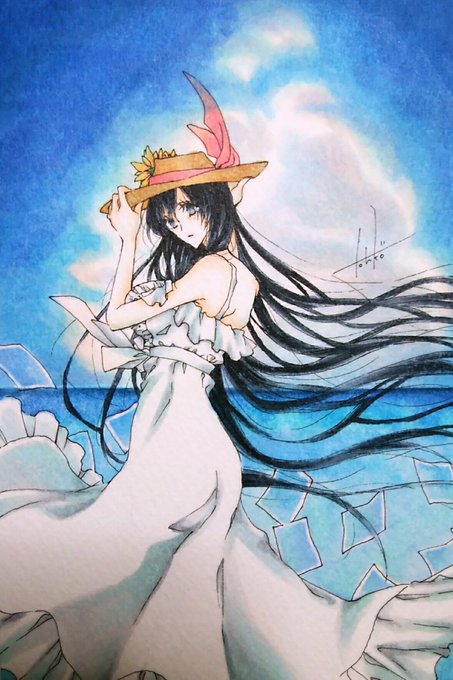 お衣装絵、花とセットの絵を描くのがとっても好きです。夏は白いワンピースが最高党。(おむねおおきめの女の子をよく描きます)