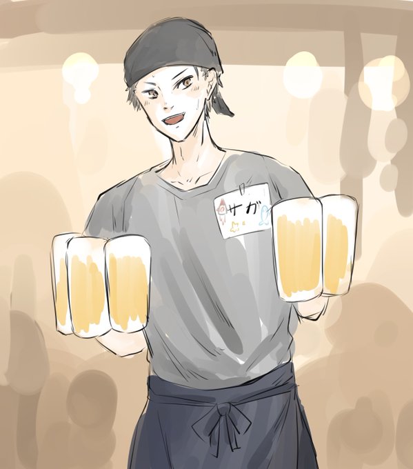 手書きのネームプレート付けるタイプの居酒屋バイトのサガ君/洋食料理屋のキッチンバイトのグリ