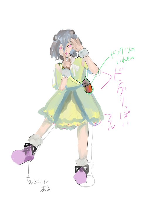 2次絵もあるけどこれ塗り全部違うな 左から描いた順番です