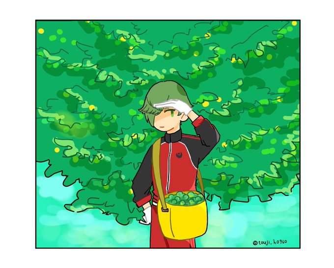 #鶯丸版深夜のお絵描き60分一本勝負 お題「梅」:収穫 後ろは一応梅の木です…