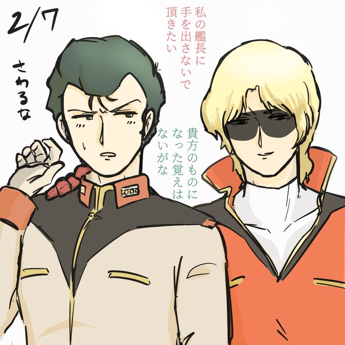 アイコン見て頂いても分かる通り、この横並びのクワブラ描きすぎなのよ。だいたい艦長を先に描いて、後で大尉を添えてるので、艦長の体が手前に来がち。 だいたい1ヶ月ごとになってる4枚。