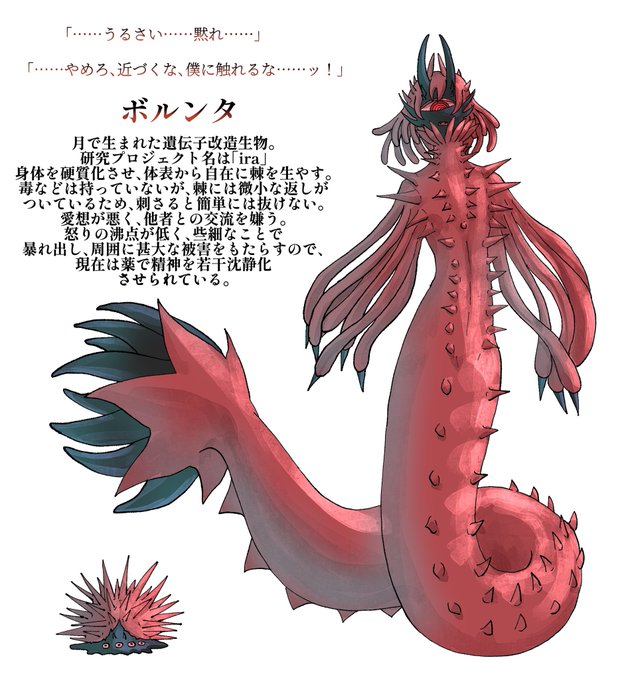#創作肉の者 #とかげの月 憤怒ボーイのボルンタくんです!! 怒りっぽくてなにかとすぐに暴れ回るので、薬で精神安定を図っています(あんまり効果ない)