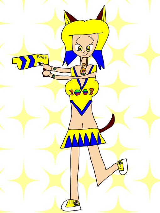 @taimantaro あのー、難しいとは思いますが、桃風たん描いて頂けないでしょうか?(無理だったらごめんなさい)画像は知ってると思いますが参考資料です。(ちなみに、ミライブラスター(2枚目以降の武器)の持ち手に猫耳ピーチが描かれています(耳の色は茶色))