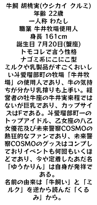 @uturari_404 遅くなりましたー!!うちのうしかい座の牛飼胡桃実です!