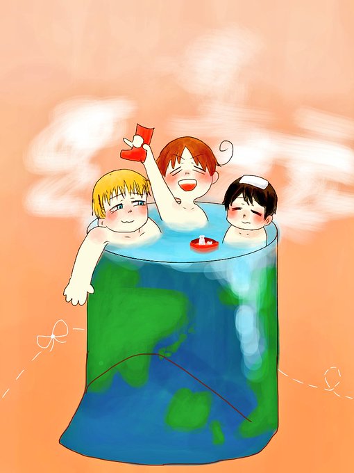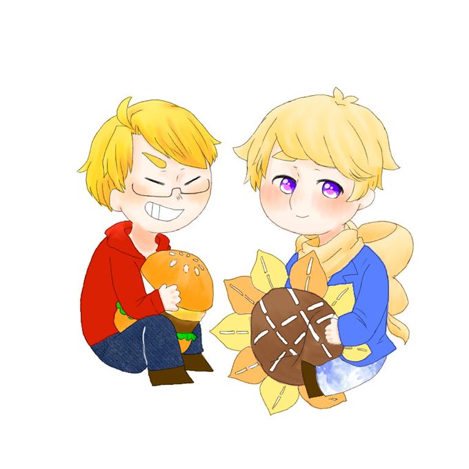 #APHコンビ版深夜のお絵描き60分一本勝負 春待ち組で【仲良し】 遅刻しました..!!字が汚くて申し訳ないです;;
