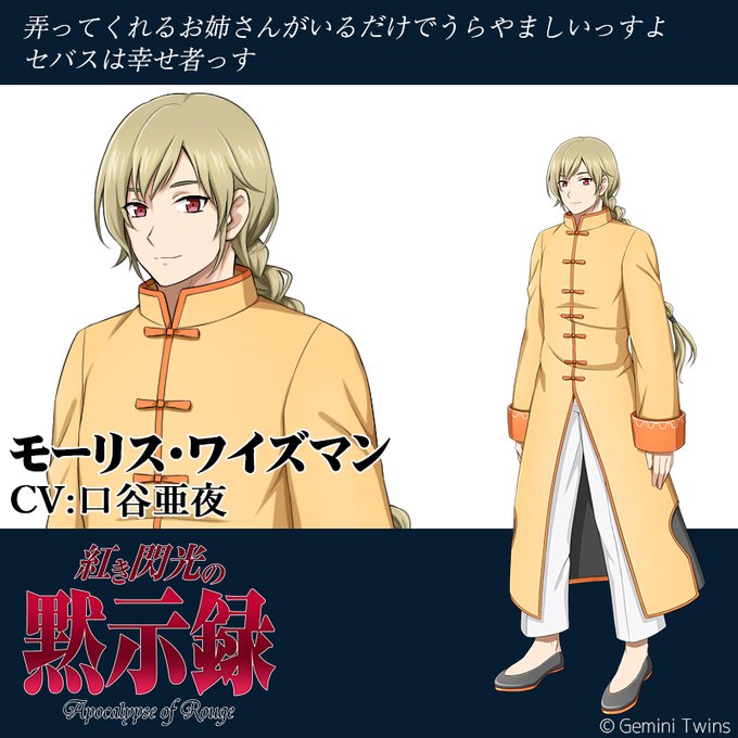 【既存情報おさらい】 紅き閃光の黙示録のセバスチャン・リシャールは金村明日香さんが演じられましたのです。引っ込み思案ですがやる時にはやってくれるとあたくしは信じてますです、はい!童顔好きにはオススメですよ☺️😊 #紅き閃光の黙示録 #金村明日香