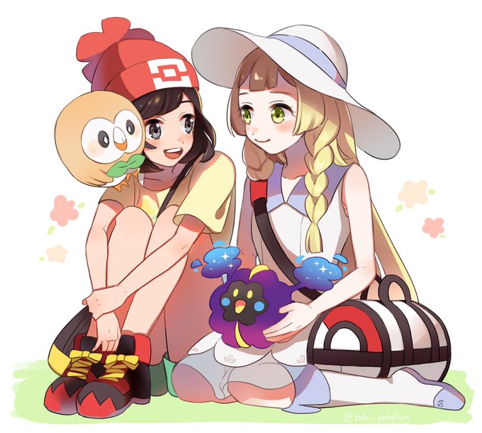 ミヅキとリーリエを描いてみました。モクローとコスモッグも一緒☺💫今度はグラジオとハウ描きたいなあ、、、✏️💭