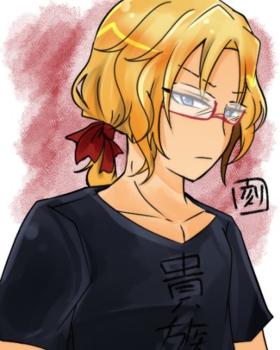 @cw_utnk 無理やり髪結んでTシャツを着せた(リラ)