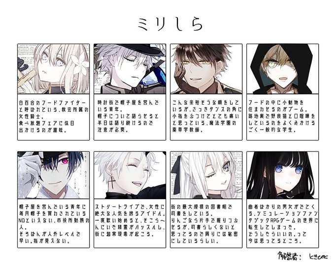 フォロワー(さん)!!に、ミリしらやってみたいと言っていただけて嬉しかったのでテンプレお借りしてつくってみました。 知ってる方は知らないふりをして遊んでくださっても大丈夫です。リプでもらえたらうれしい!(カドワス版とTRPG版お好きな方よろしければ~)