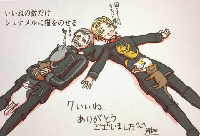 わーい!7いいねもして頂きありがとうございました((*´∀`*))7匹の猫さんをシュナメルにのせてみました。1枚目の絵は乗せてると言うより持ってるのでは🤔?ってなったので、2枚目の絵を急遽描きました✍️どっちにするか決められなかったので…結局両方のせちゃおうと思います😅💦