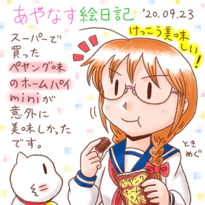 ホームパイミニペヤンスソースやきそば味を食べたよ_200923 #あやなす絵日記 #ねこ #眼鏡 #みつあみ #ホームパイミニペヤンスソースやきそば味 #セーラー服 #あやなす絵日記2020 https://t.co/kprPH9i7jz