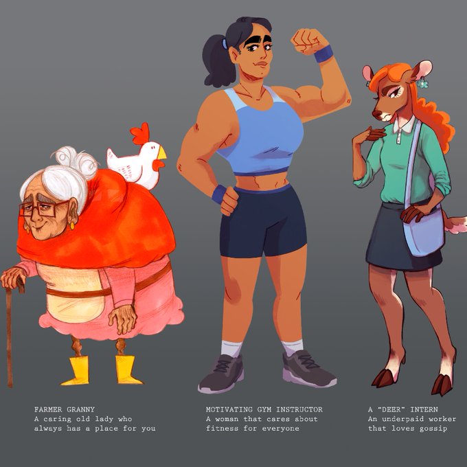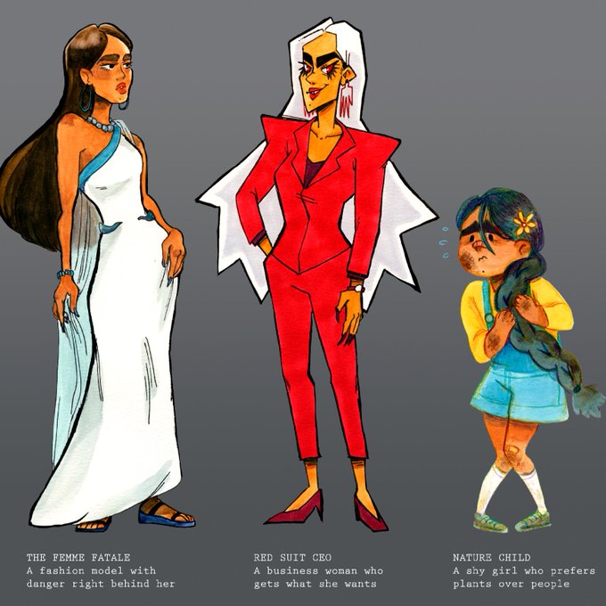 9 #characterdesign project based on a portrait! was a lot of fun trying to make each one unique yet still connected.
