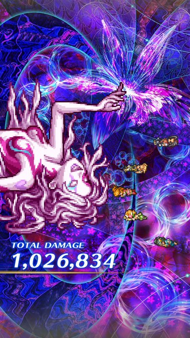 ドットの済王さまをひたすら愛でるイベントだった🍧かわいらしい とりあえずウルピナの釘バットとヴァッハ神との4手でゆるゆる周っておきます #ロマサガRS