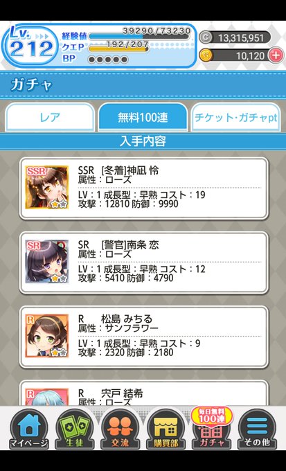 無料100連で怜ちゃん覚醒できた☆