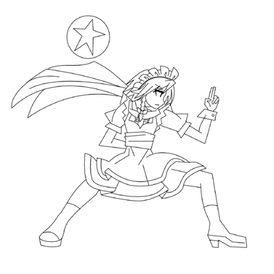 右向きのキャラを描くのが苦手な場合、普通に左向きに描いてから左右反転させればこのように簡単・・・・んんん~~!包帯の位置が逆になりましたぞぉ~~!!