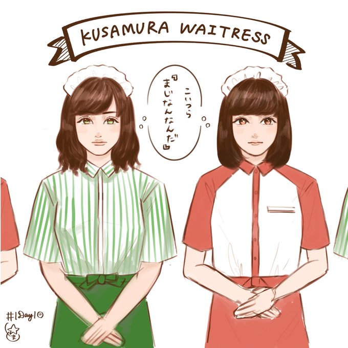 #1Day1☺︎ 草村ウェイトレス☕️ 2人とも可愛いんだもん。 描きたくなっちゃうよ。
