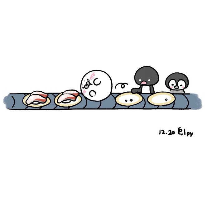 12月20日は、 #ブリの日 お寿司屋さんでコロコロ🦭🐟 #今日は何の日 #アザラシまるまる #イラスト #illustration #絵 #procreate