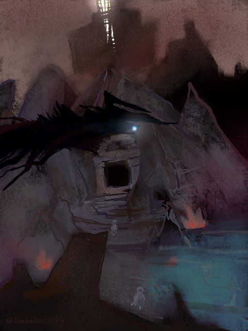 ワンドロで塔の形をなんとな〜くで描いたら結構違っていたのに気付いてしまい描き直し+加筆 もうこんな時間…おやすみなさい🌙