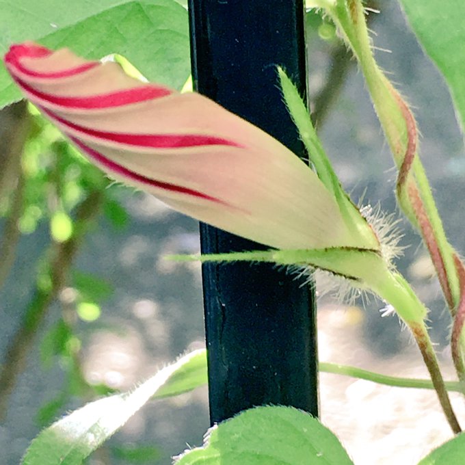 美味しそうな苺とバニラのミックスソフトクリーム(正解は朝顔のつぼみ)。白色以外の朝顔が咲き出した!