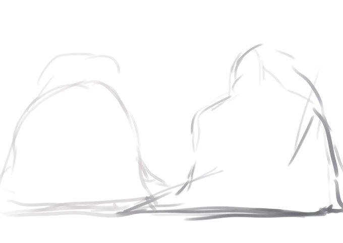 ※左がラフ(と言う名のかまくら)、右が完成図です 八人描くには通常の幅では狭すぎて!なんとか左のかまくらを調製して人の形になりました❄よかったよかった。