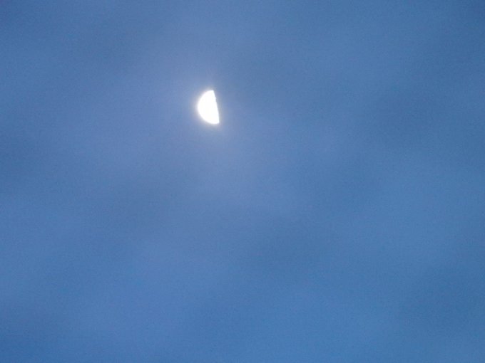 今朝のお月様。空が明るくなってきてたけど、アップにすると明るい月に露出が合って空が黒く映るのね~