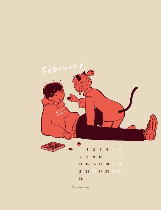 今月はリクエストにもらった「バレンタイン」と「にゃんにゃんにゃんの日」をテーマに描きました🐱🍫