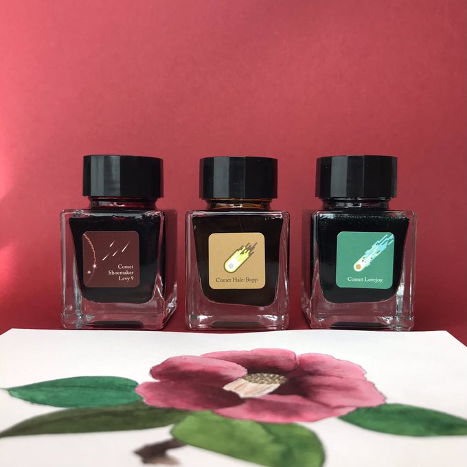 HASE硝子工房×Tono & Lims「Comet Atlas」と文具館コバヤシ「赫耶」で描きました🍀