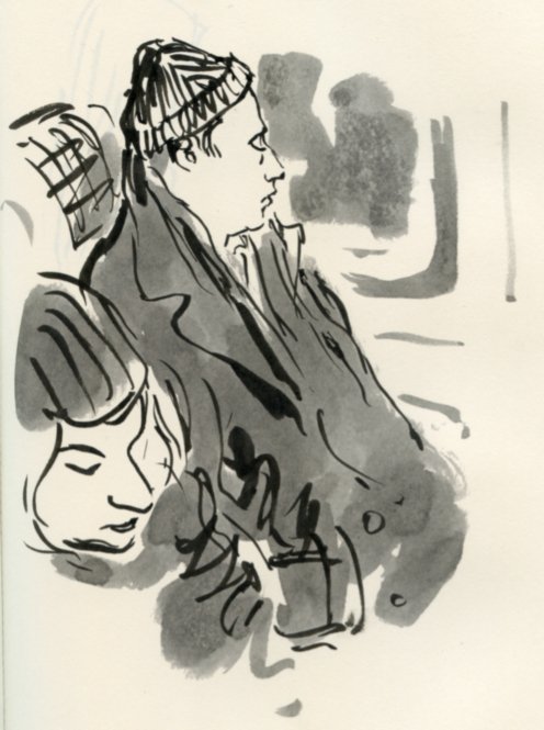 Left my brush pen at work yesterday so tried out some other media for commuter sketches...