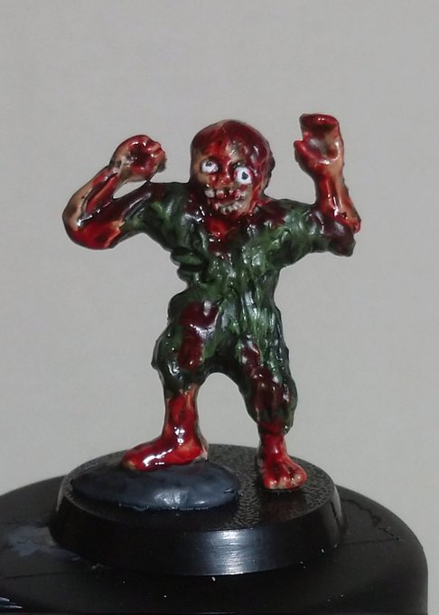 「ネクロスの要塞」ゾンビ(第1弾)を塗りました。 これ、アンデッドなので青みがかった死体色でも良かったかもしれませんね。 これだとかなりピチピチ死体かも。 #ネクロスの要塞