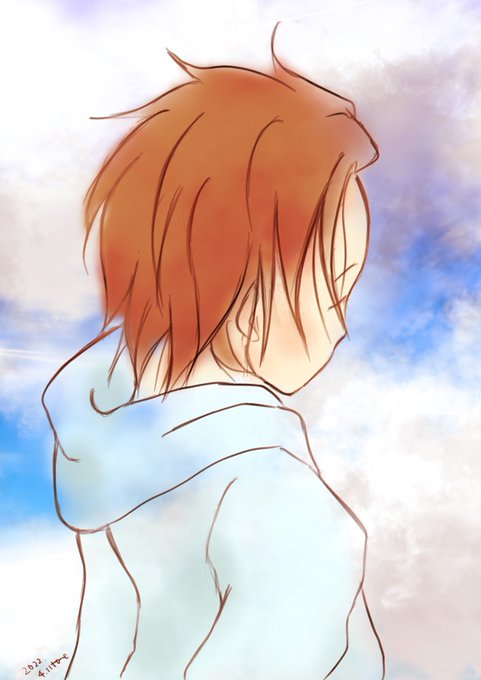 ポーズとれす。 空の背l景自l作。 とりあえず、加l工が楽しいお年l頃🤣