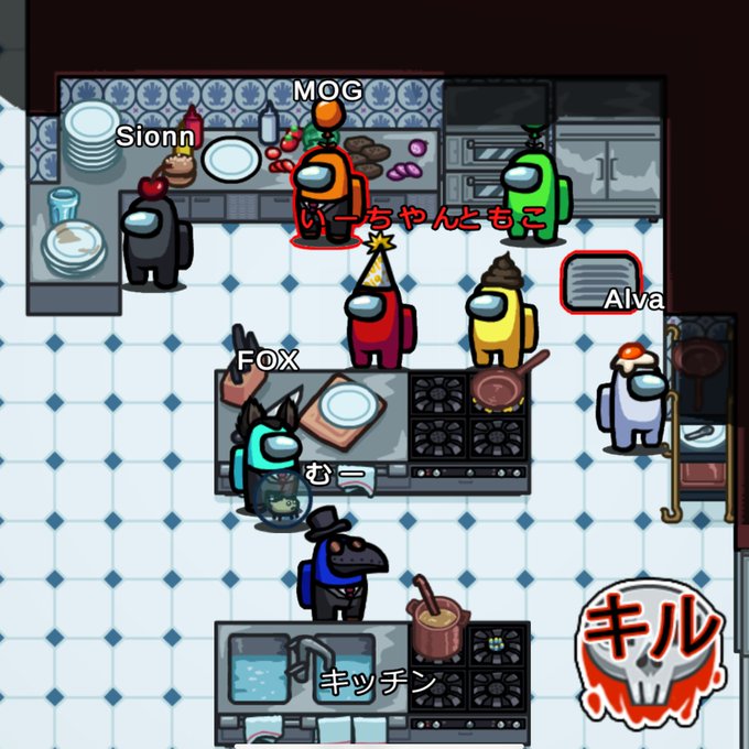 本日のAmongUsもとっても楽しかったです!ありがとうございました😇 今日は真っ白だったけど記念撮影調理実習中に殺人調理マンになってしまった~🔪