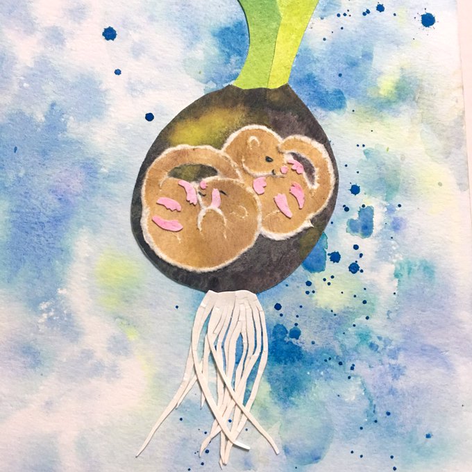 「春の移ろい」の始まりの作品にしたいなぁと考えていて色だけは塗っていたのだけど、なんだかモチーフを形にできずにいた。