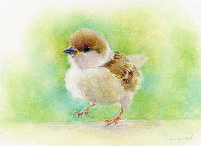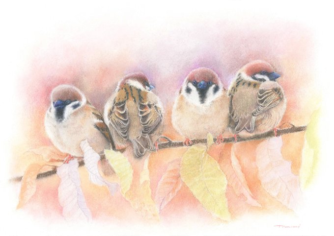 パステルを主に、細部に色鉛筆も使用して制作しています。すずめが大好きです。
