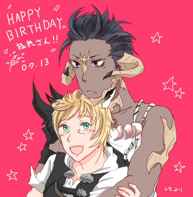@eexl_nere 滑り込みでオスラッテおめでと絵ですううう受け取って下さい!!髪型とか悩んで1番目のやつにしちゃった・・・。今度これがいいとか言ったって下さい!お誕生日おめでとう!!!