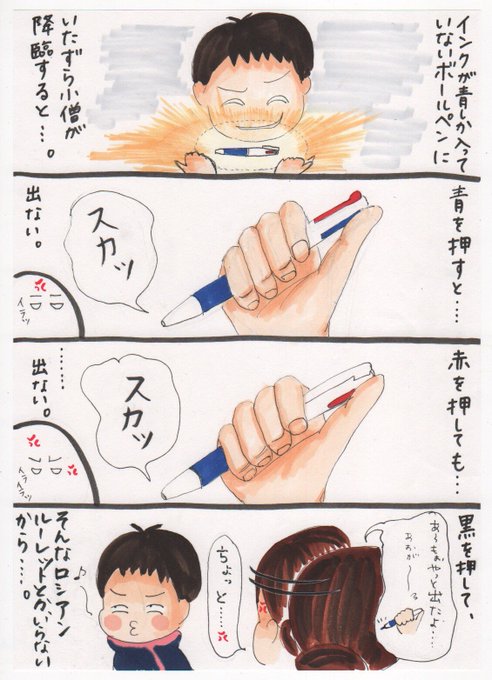 塾講師とvsいたずら小僧、ボールペン編 多分、平方完成の腹いせだろうが。 #ボールペン