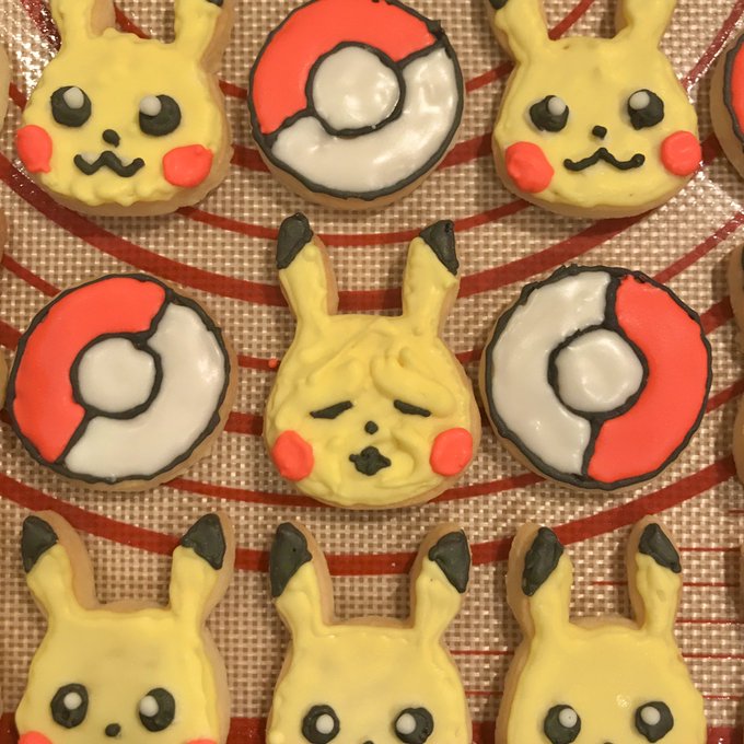 昨年より良いものにしようと頑張りました。 きっと難しいだろうと思ってたけど、予想以上に大変、、 後半でアイシングの固さ調節の感覚を掴めてきたから、次はもっと上手く作れると思うけど、、当分いいかな。 #ピカチュウ #アイシングクッキー