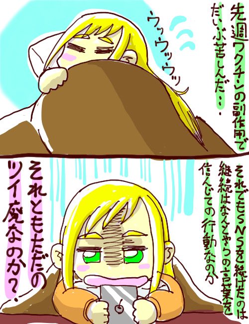 あぁ、副反応キツい… 前回は起きてても余裕だっのに今回はしんどい。熱は高くないのに体がやばいくらい重い…まさにコレ。 #イラスト #日常日記 #ワクチン