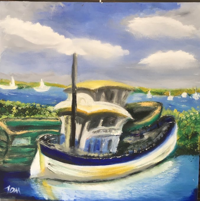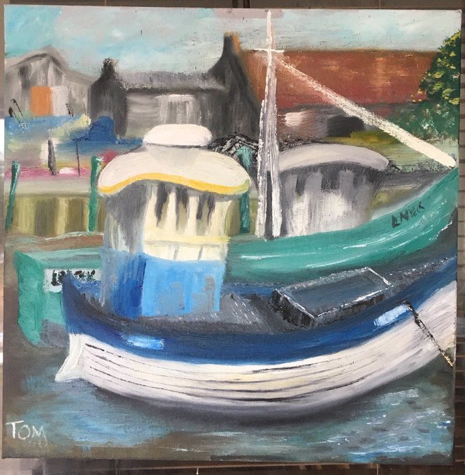 Yesterday’s painting Pallet knife work using thick layers of oil paint combine various coloured with titanium white .