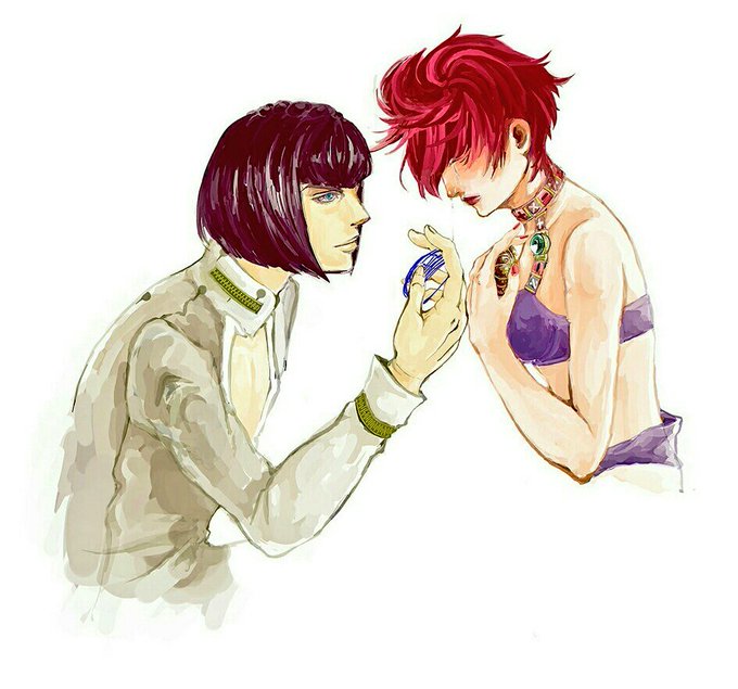 実はこうなってまして…ブチャトリだったんですよぉ…ただなんか違うって描くの途中で思ってやめた ブチャラティの手にあるヘアピンは下書き段階だったから青