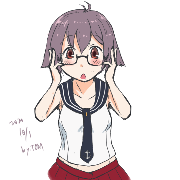 #艦これ版深夜の真剣お絵描き60分一本勝負 #艦これ版真剣お絵描き60分一本勝負_20201001 眼鏡の日酒匂 2分オーバーですごめんなさい