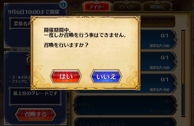 さーて、今月の名声召喚は? ・名声MAXまで貯める ・金ユニ演出…ちびか!? ・てめーは金倉庫行き の三本です。 来月もまた回して下さいね? じゃん、けん、パリン!!ウフフフフ