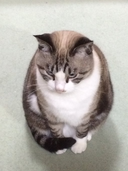 近づいて撮ったのと引いて撮ったのと。 やってみてください、ふっとい猫もほっそりかわいこちゃん♪ #猫の写真へたくそ選手権