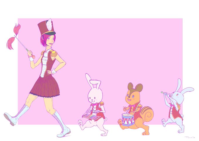 購入ゲーム紹介などの動画に使用されているBGMの、かわいらしいマーチングをイメージして、こっしー音楽隊を描いてみました🎹🥁🎺