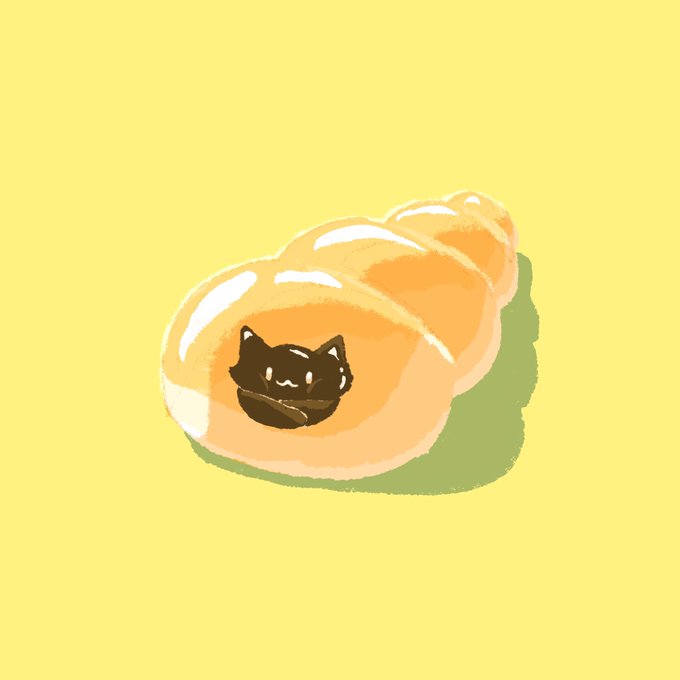 パンのソファに丸まるにゃん。 #イラスト #illustration #食べ物イラスト #ねこ #AdobeFresco