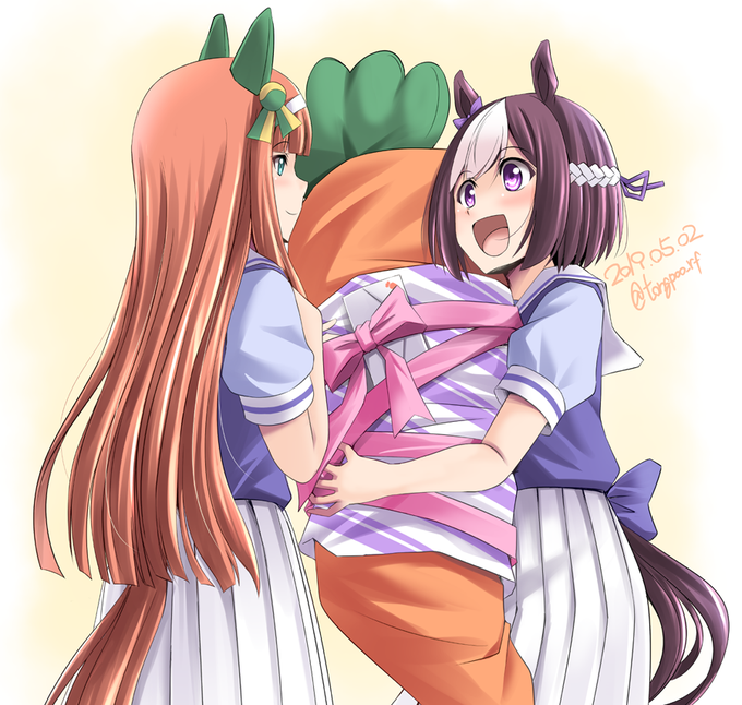 スピカのみんなからのプレゼントをスズカさんが代表してスペちゃんにお渡しー😊